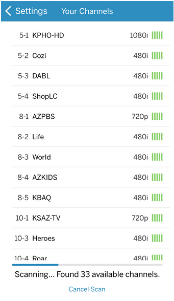 Trying to understand the layers of Channel Scan on Legacy Tablo. The following example is taken using the iphone app.