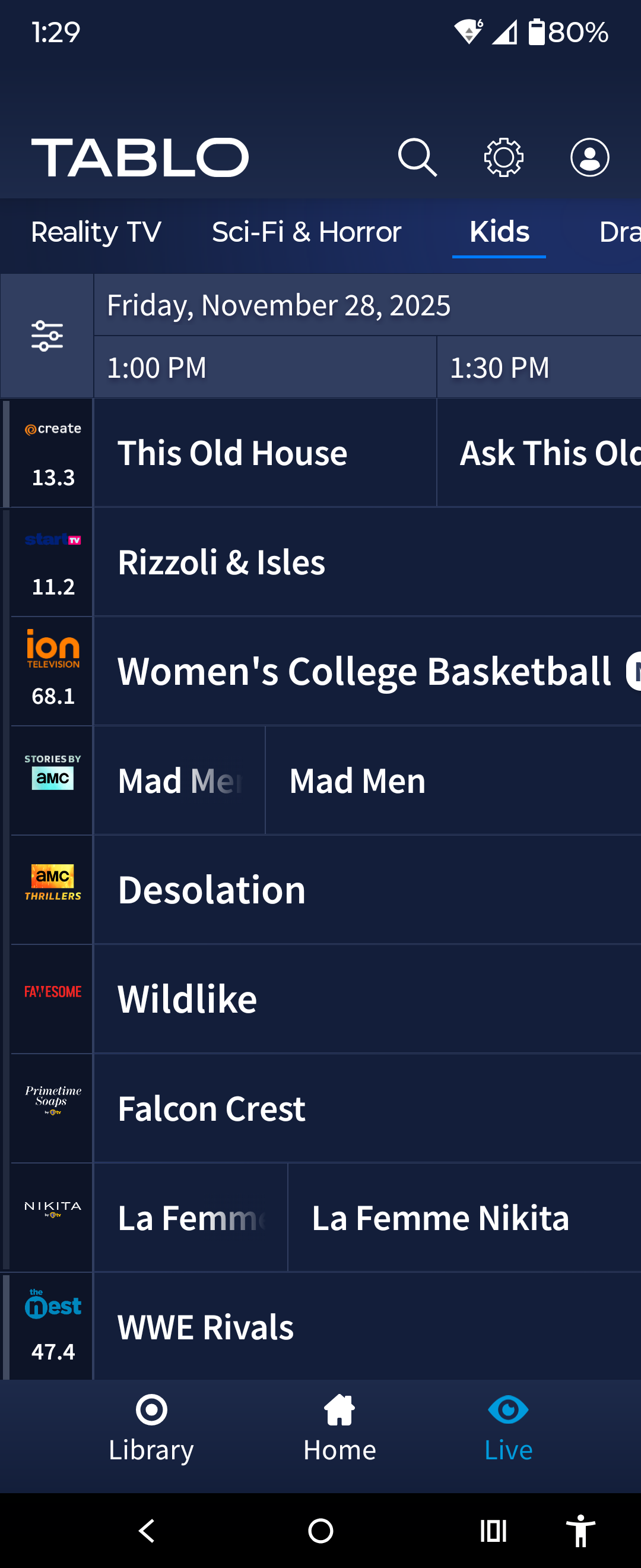 It’s curious that the ‘Kids’ category (and a few others) only has a single entry - create This Old House - a very popular childrens program… But the entire screen is populated by other programs from the next category or categories.