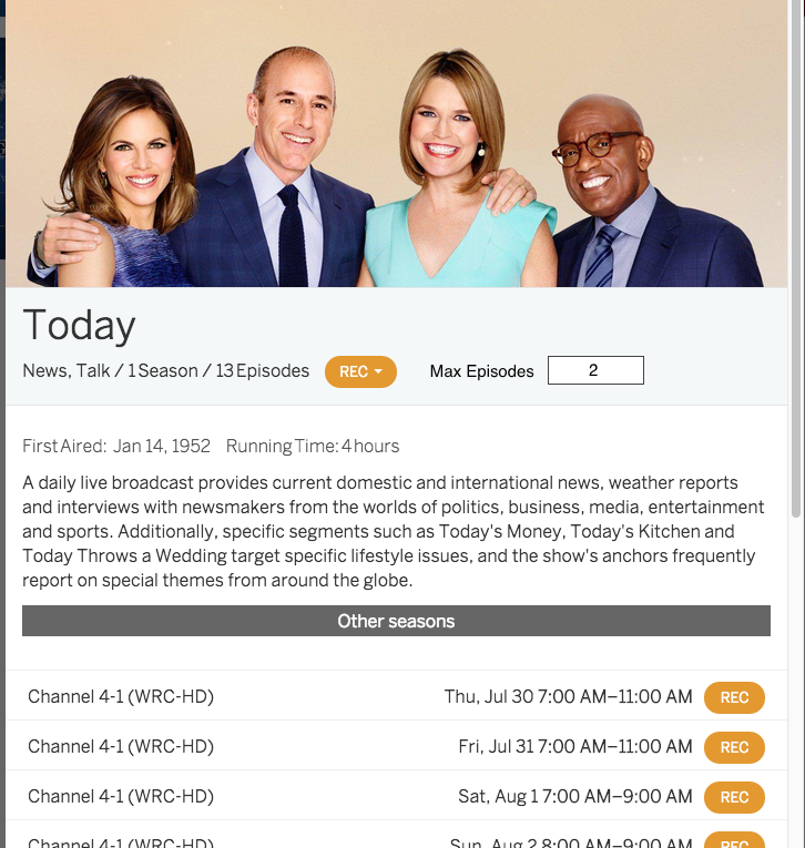 Long time SageTV user here as well. I went through all Sage versions up to the last one and it just kept getting better. The advanced recording screen had just about every option you could want. I think Tablo is ‘several years’ away from all those features. I too find the number of News recordings piling up useless and a task for me to remember to delete them periodically.