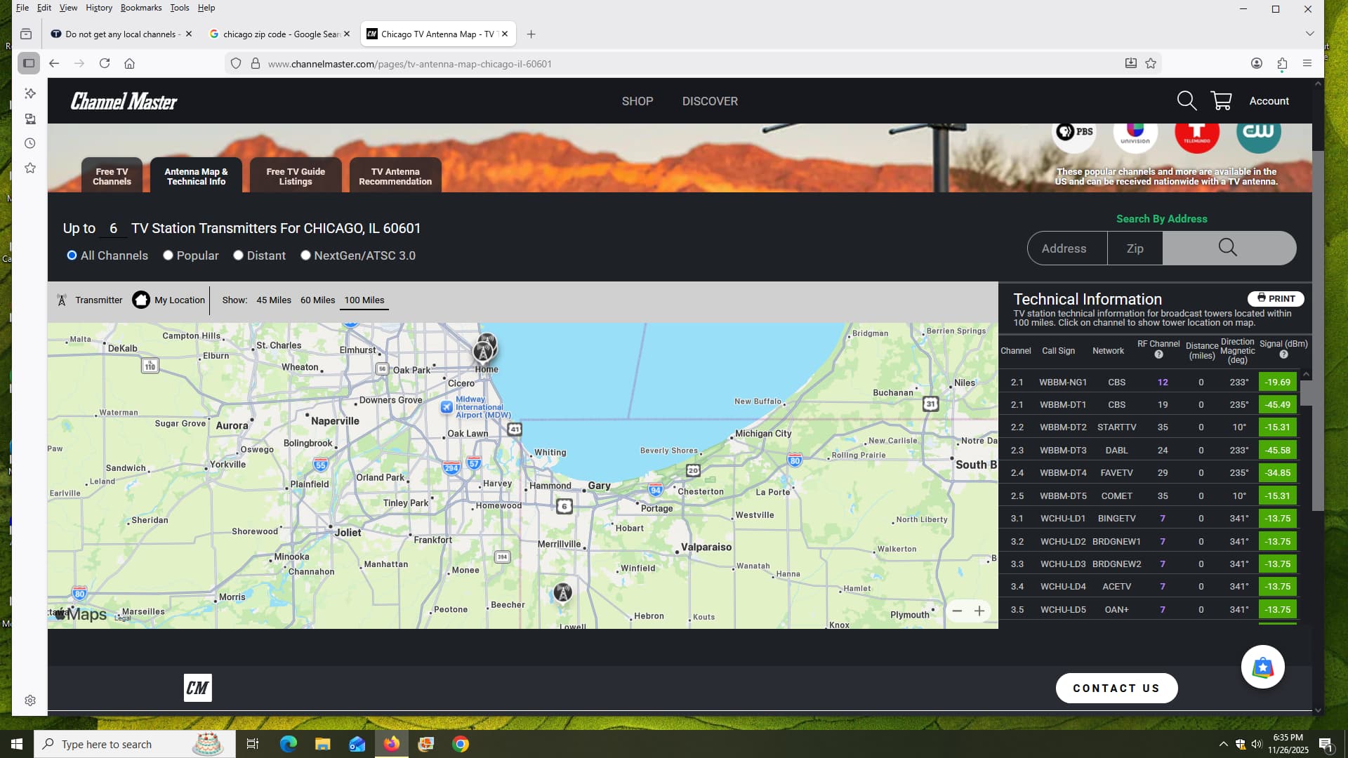 Just for grins, both Rabbitears.info and the ChannelMaster website tool show virtually nothing available in my specific area. Both show transmitter locations etc, but report signal levels so low (red or whatever) so as to not be useable.