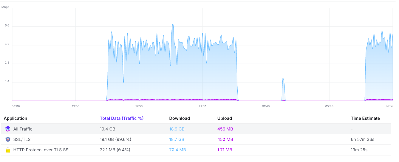 I have a bunch of ubiquity networking gear, and the Tablo often shows up as the #1 data consumer. It is downloading about 200GB / month of data.