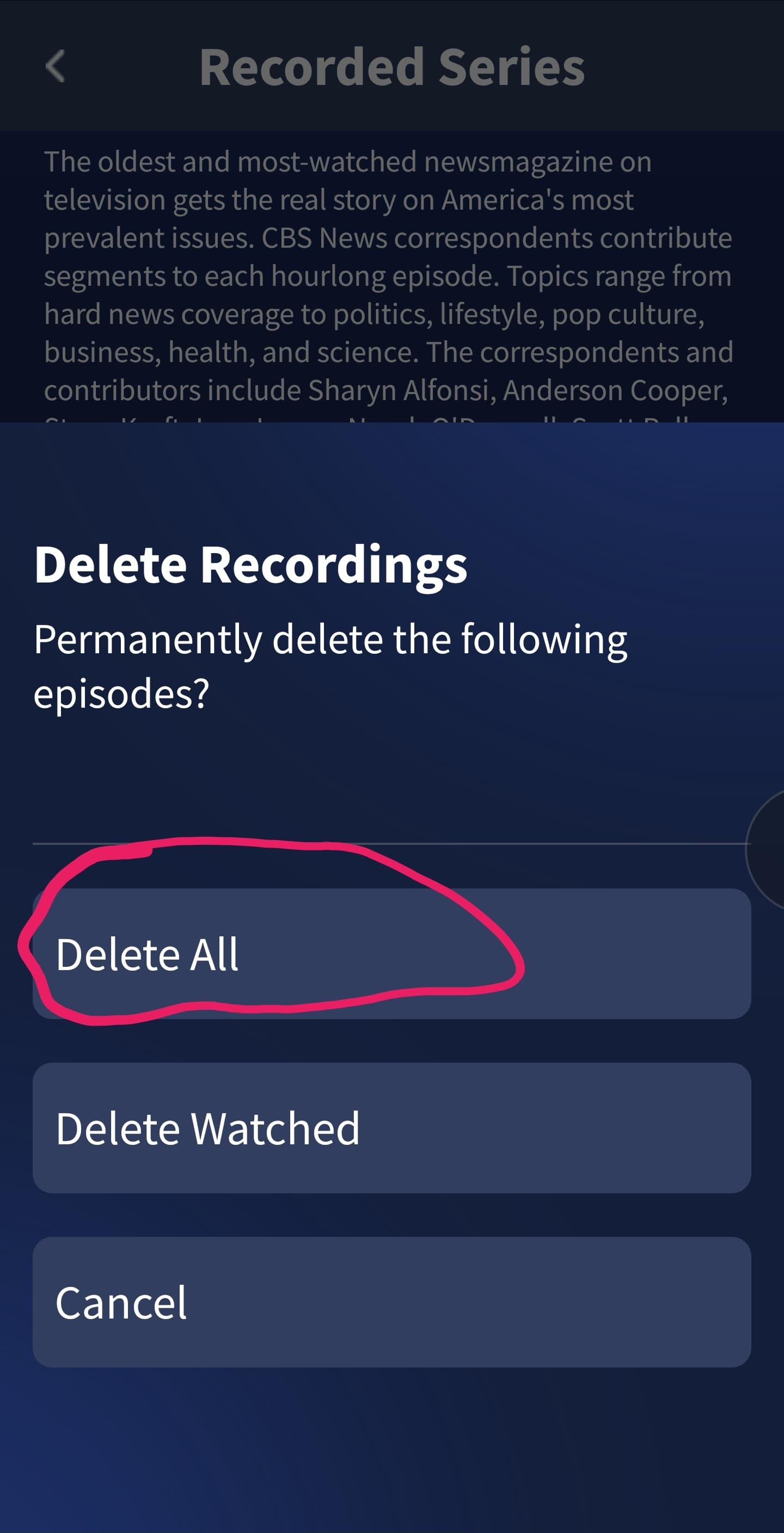 “Pinpointed” makes it sound like you just went into the guide, clicked “record series” without making any other modifications to the series.