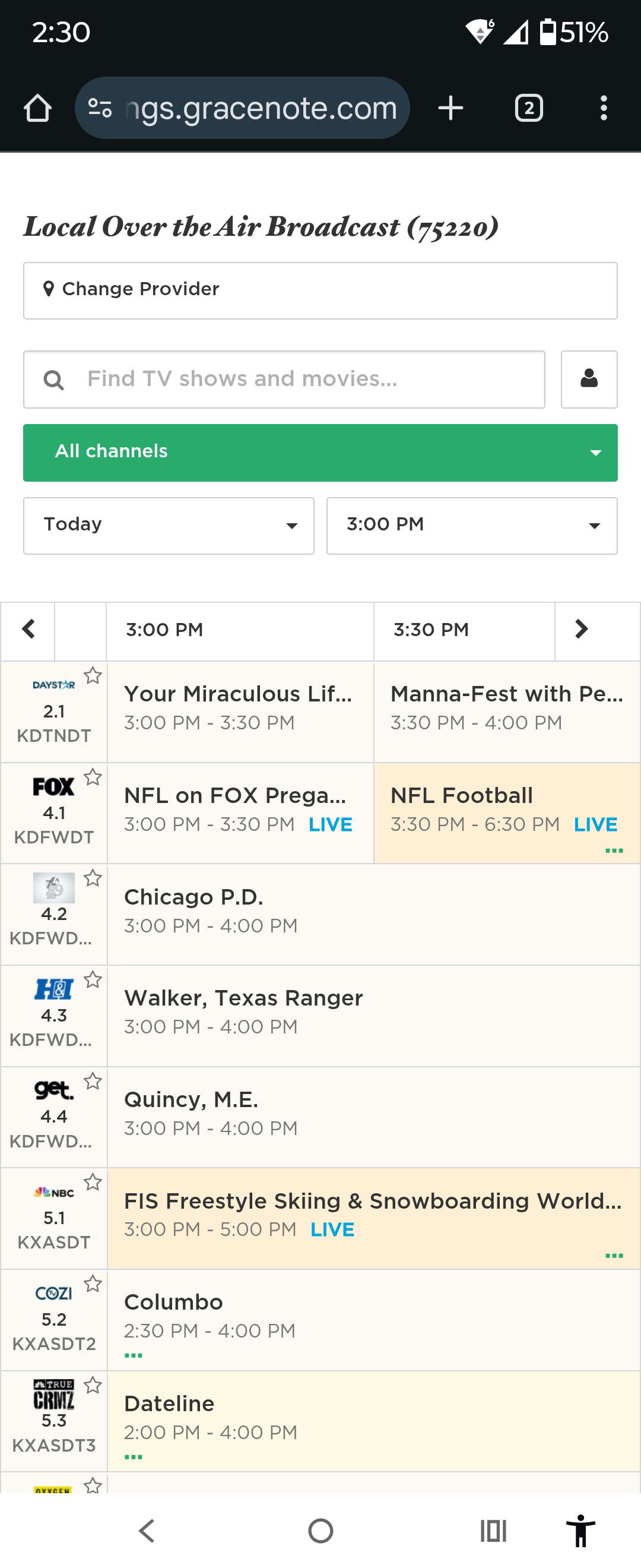 Here’s the Gracenote TV listings. Just change it to your zip code… To see if they match.