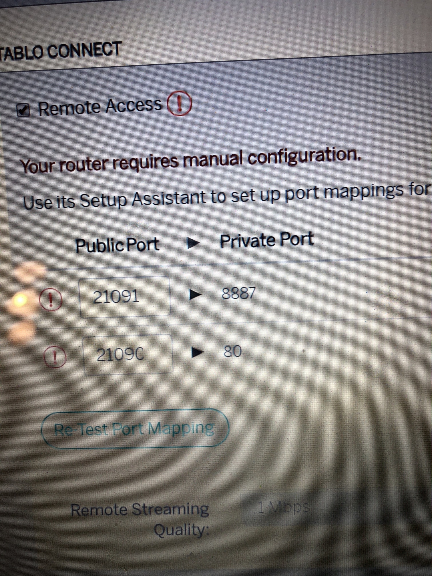 I just noticed you have 2 Tablo units. You’re going to have to use different Public / WAN Ports for each Tablo. They can’t be the same.