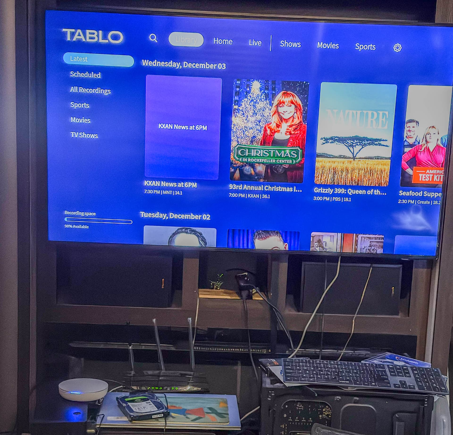 Another indicated that on his screen there were permeant indicators showing conflicts and failures. A scan of earlier posts will show his attached picture showing these indicators. My screen doesn’t have these indicators. See my attached picture. Below TV screen you can see the temporary location of Tablo and hard drive.