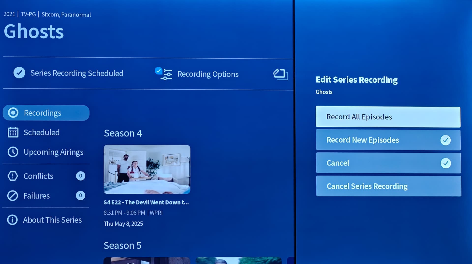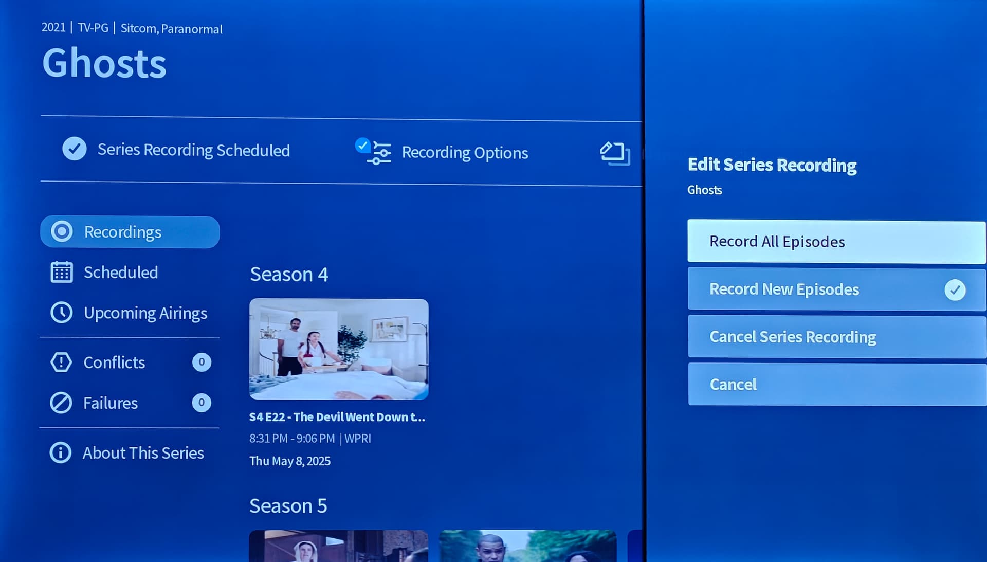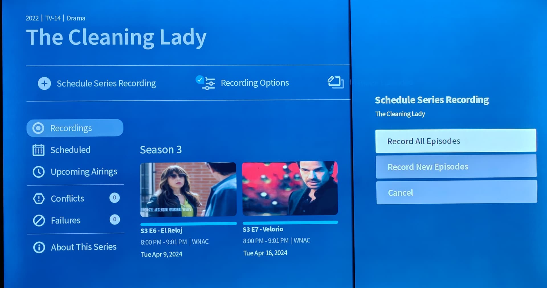 The holiday recordings, that I turned off scheduled recordings for, are now locked out of enabling again on all apps.