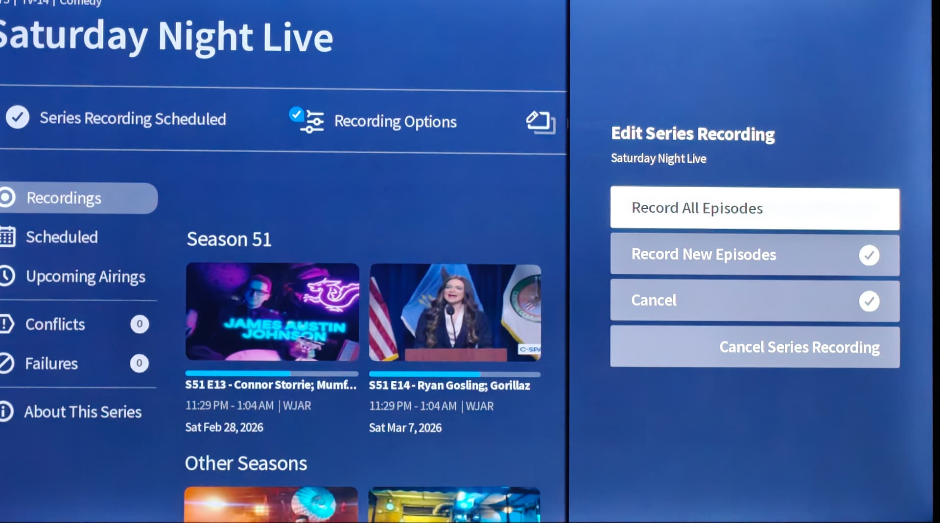 Also noticed all shows have canceled checked off with/including either record all episodes or record new episodes.