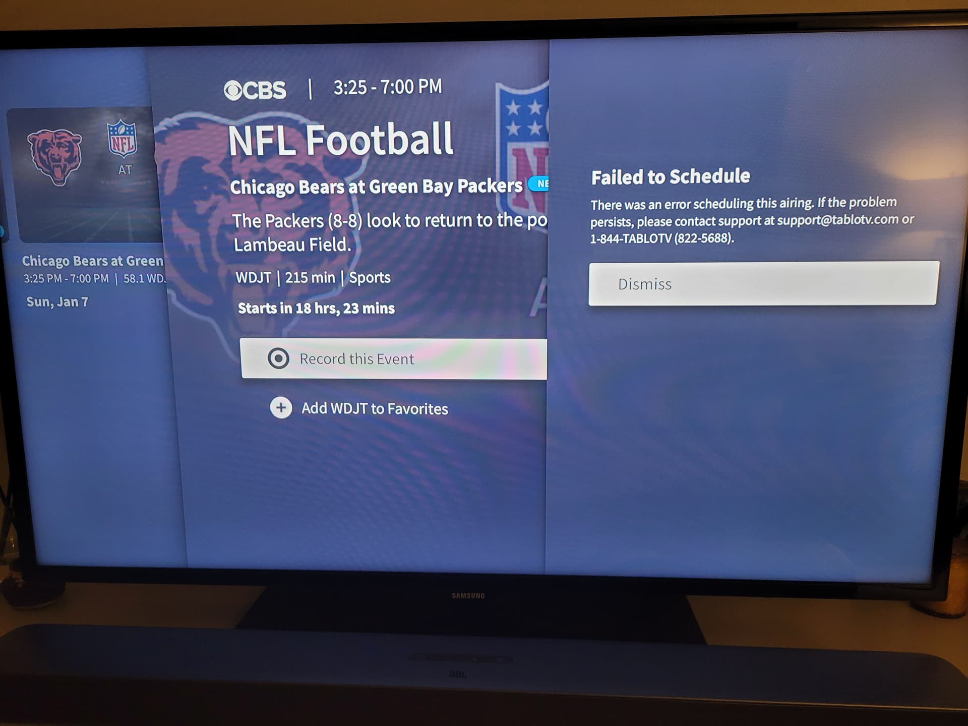 This is getting ridiculous. I tried recording from the live guide and from the sports tab. Neither work. I restarted the Tablo. Still didn’t work. I set the Tablo to record all NFL games. Guess what? All games were set to record accept the Packers game. Seriously?