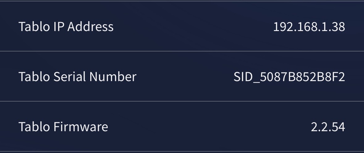 - the SID of your Tablo ?