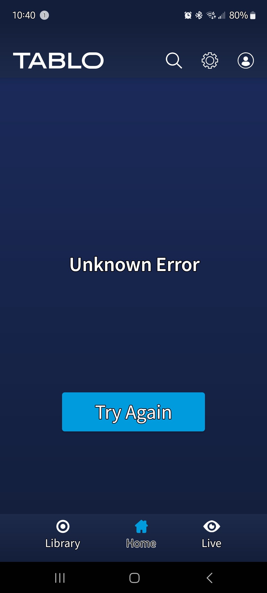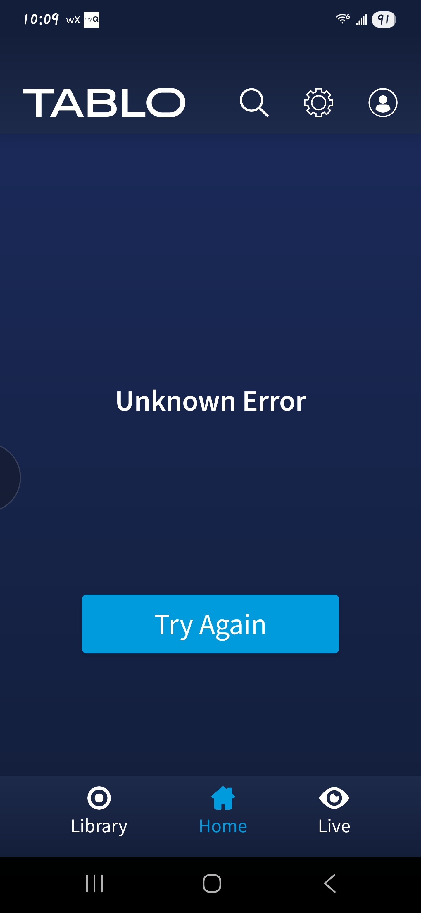 Yes. Library and live are the only options you can select, all other options are greyed out. Just tried to go to Roku home screen and go back into Tablo, everything seems to be working normal now…Android Tablo app is still showing unknown error