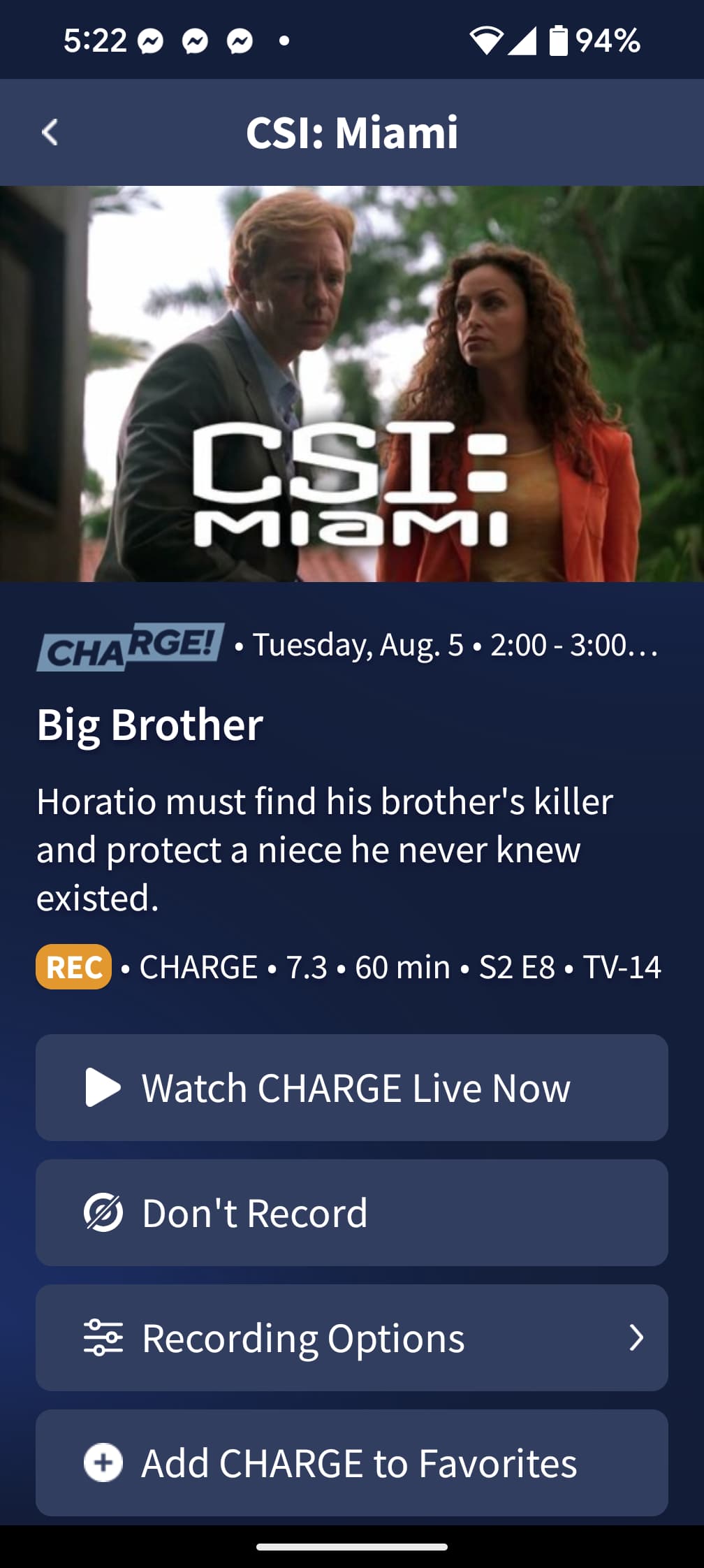 @Ryansal79 Sorry. I looked and can’t find Big Brother. Good luck. Iam sure it will get better soon for you…