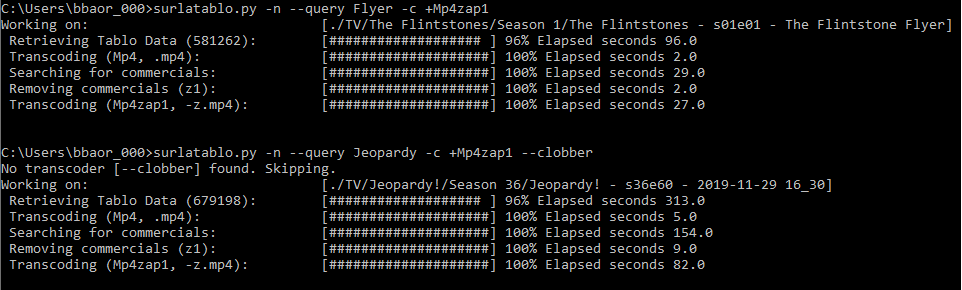 I just installed SurLaTablo and am experimenting with commercial skip. Both examples below yielded a full recording and another recording that was about 1/3 the length of the original,(presumably the zapped version?). Am I doing something wrong?