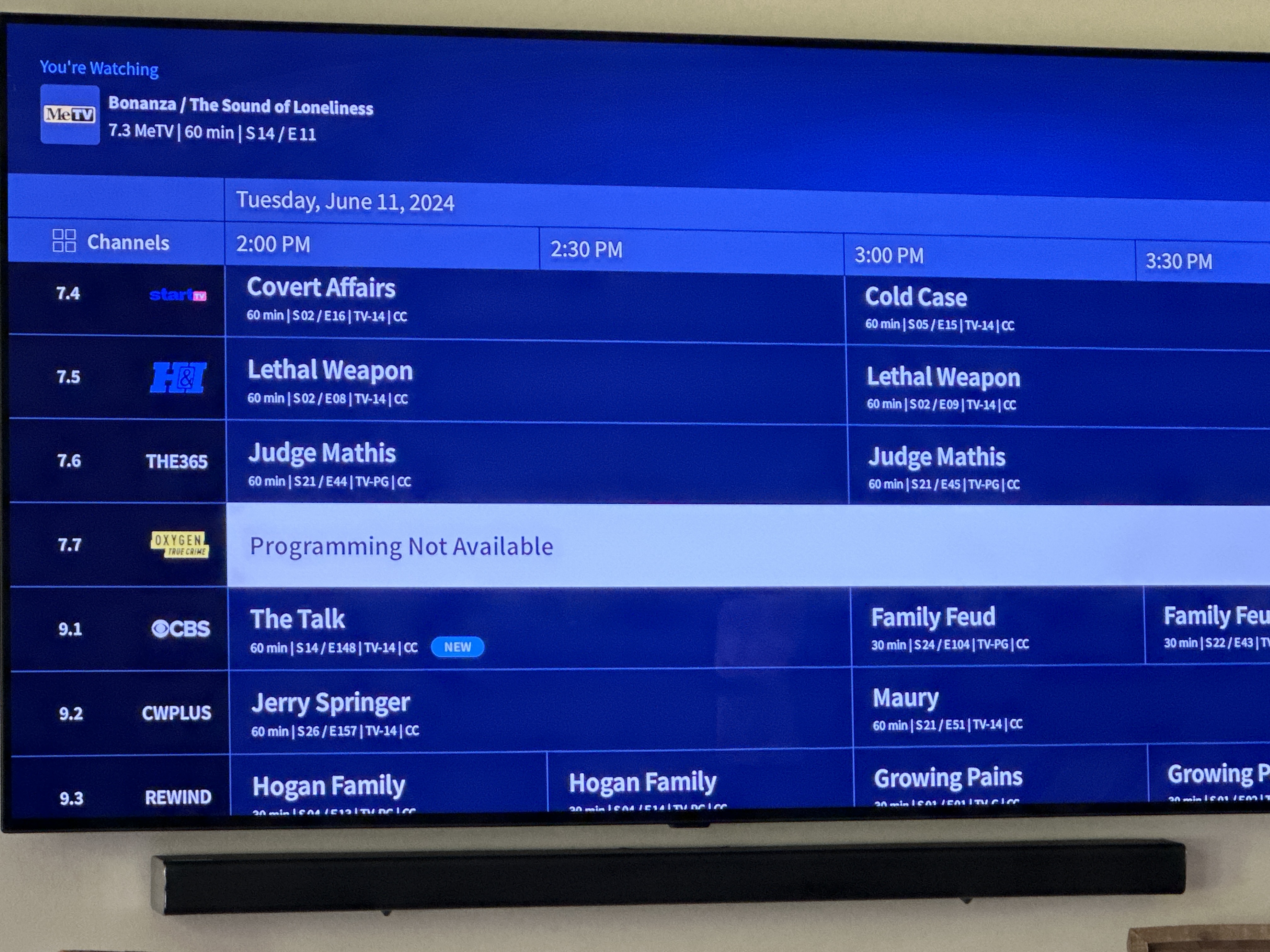 This is the one station that has been appearing and disappearing from time to time for no reason that I can see in the guide. It is not just missing guide data. It simply is not there to tune to.