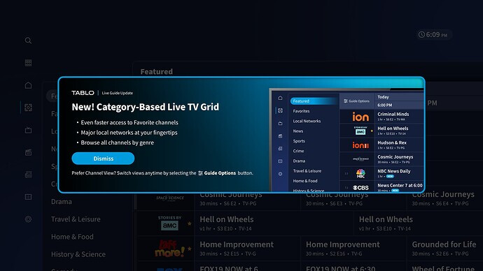 I wish that Tablo would put their programming efforts into the other views, especially the Sports section since that took a major downgrade when all this new GUI stuff started. The Sports section needs the Featured Sports to go back to the way it was with all of the different sports categories. Right now it’s showing categories that are not even in season.