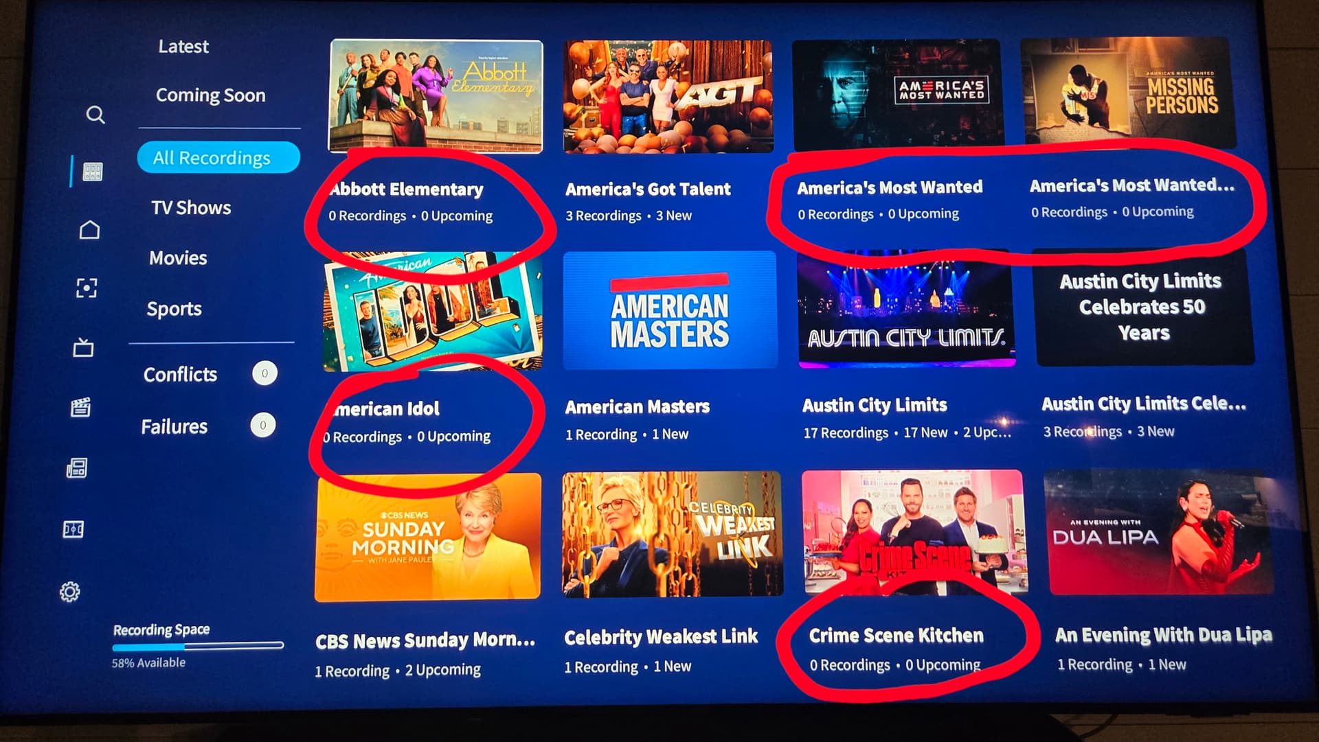 Also, was one of the Library tabs changed to All Recordings? I thought this was called something else. It’s definitely not All Recordings because there are some scheduled items in this list with no upcoming or existing recordings - both are goose eggs on 5 of the visible shows.