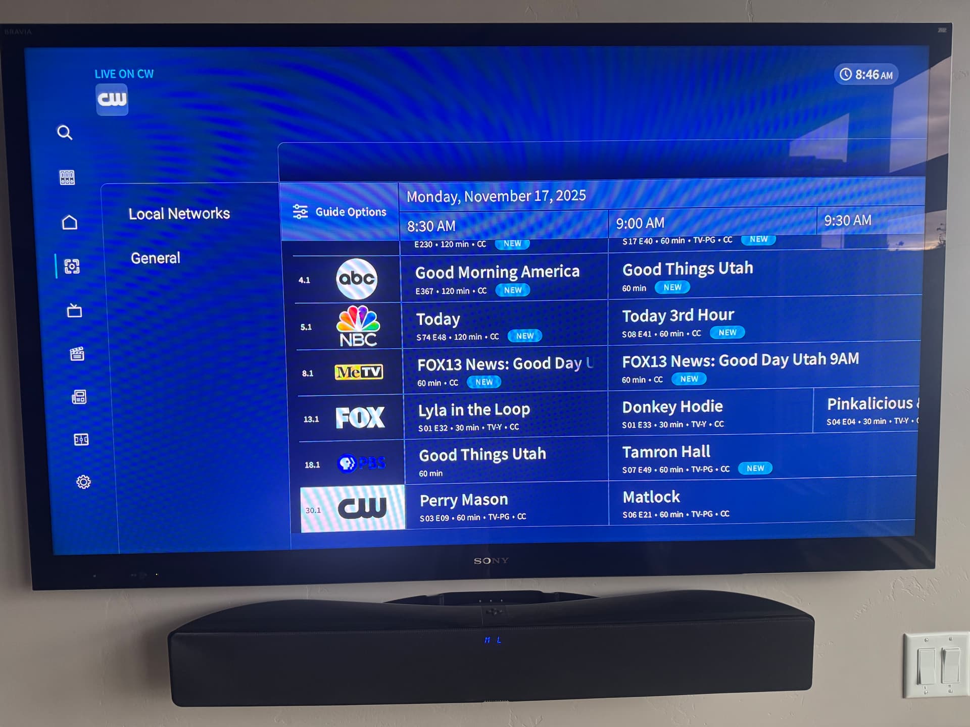 This is category view. MeTV, FOX, PBS, and CW programs don’t line up.