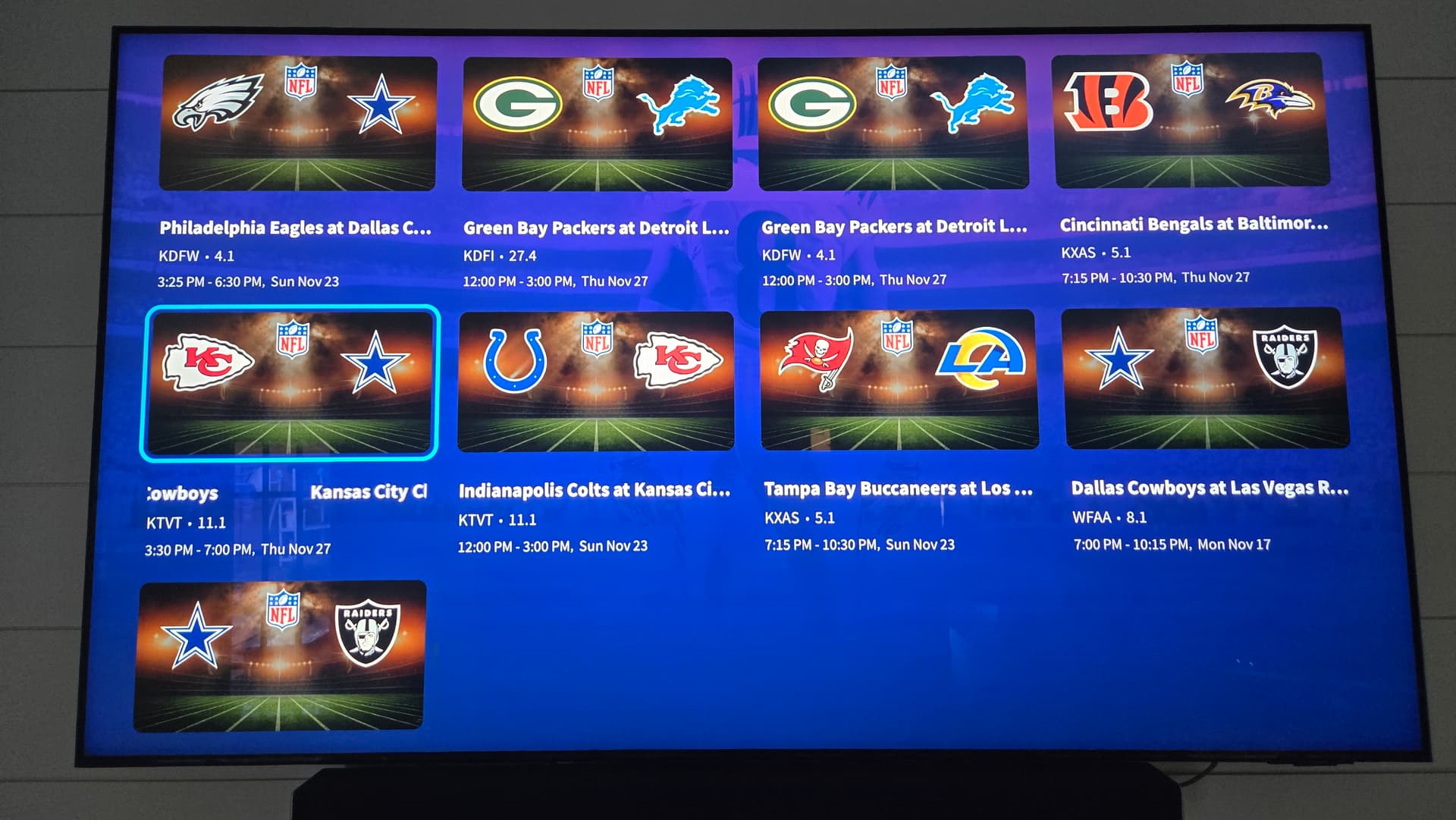 One other thing I noticed about selecting the Sports category in the sidebar menu - when active, it shows Networks, Upcoming sports, and Featured sports. Clicking the NFL entry under Featured sports shows all the NFL games but they’re in no order. Can this be sorted by Date and Time so that the next airings show up first?