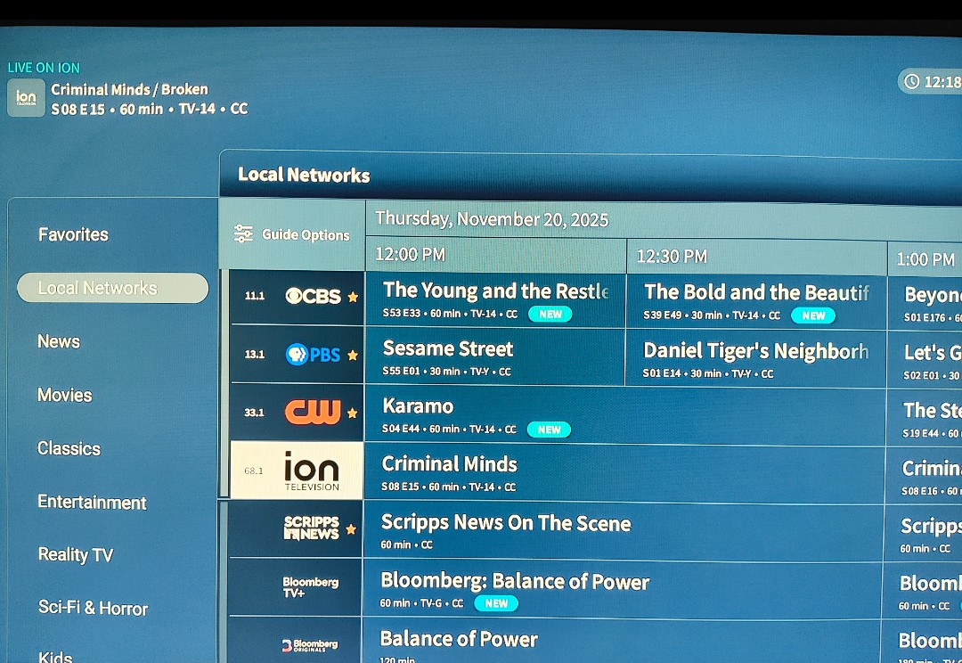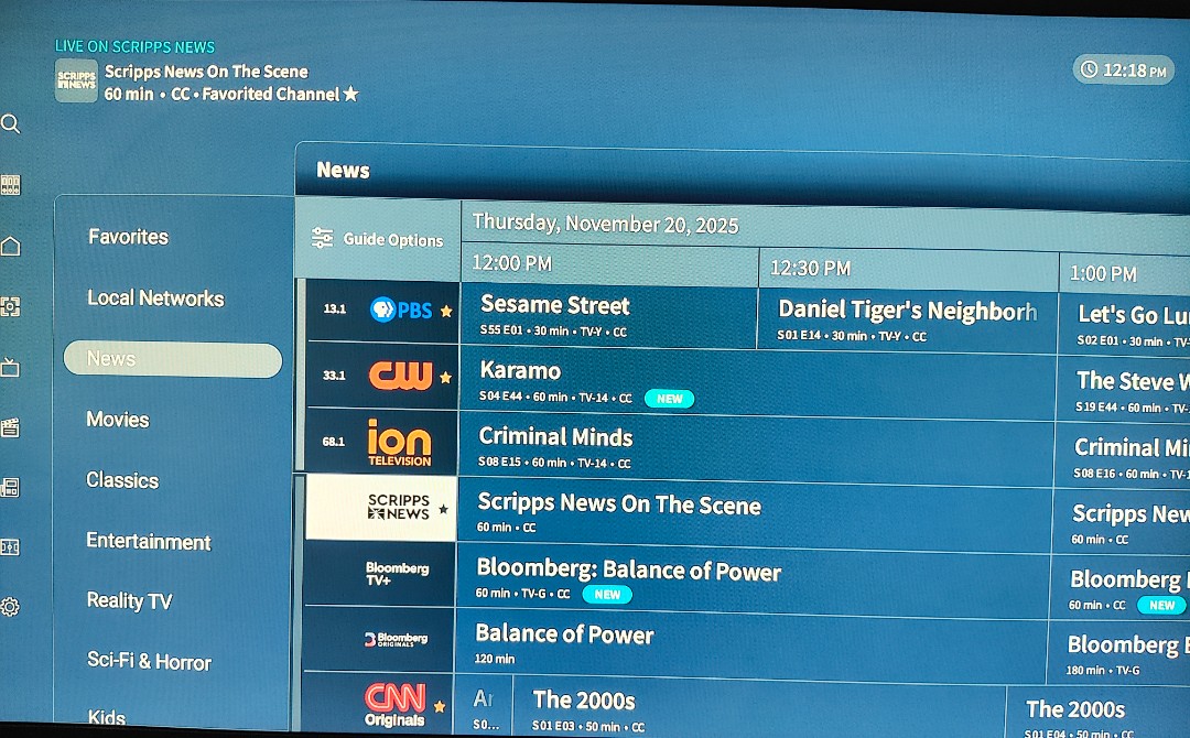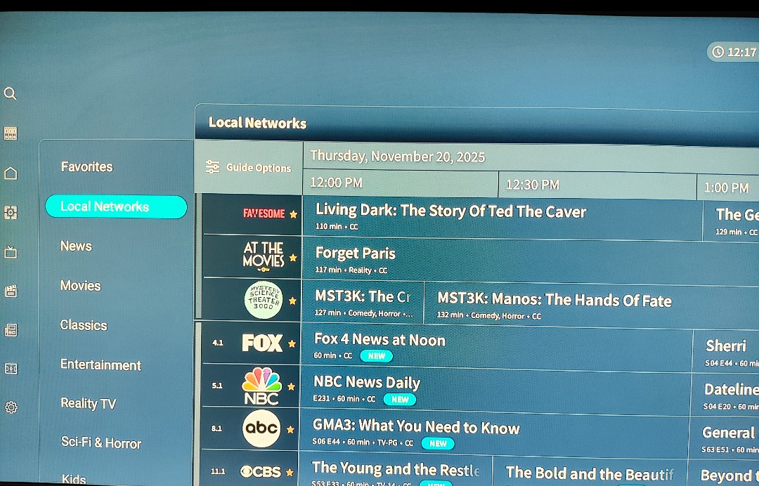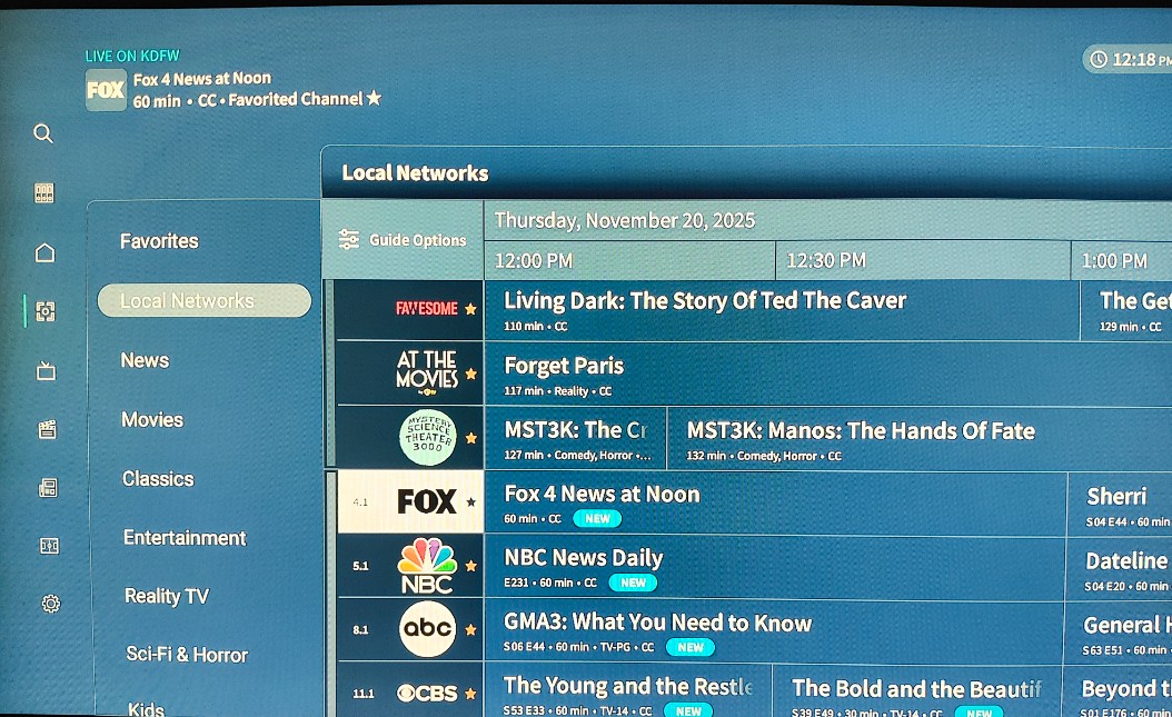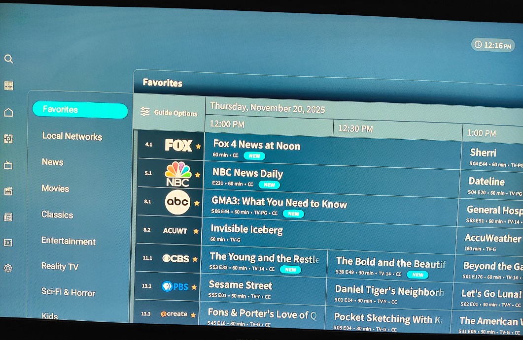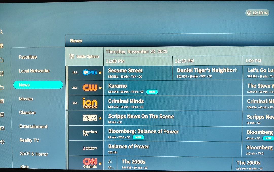 Right now, the Google TV in my family room is working correctly in the channels view, but the categories view is sorted incorrectly. I’ve left it in channels view for now since that is sorted correctly (for the time being).