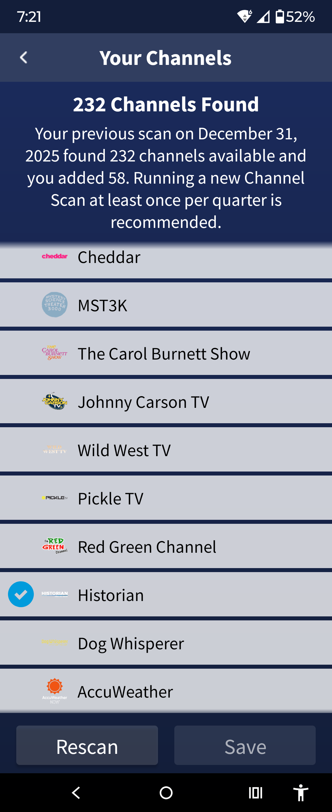 Yesterday I removed all the FAST channels from my Channel Lineup. Did a rescan and one new FAST channel appeared. Historian.