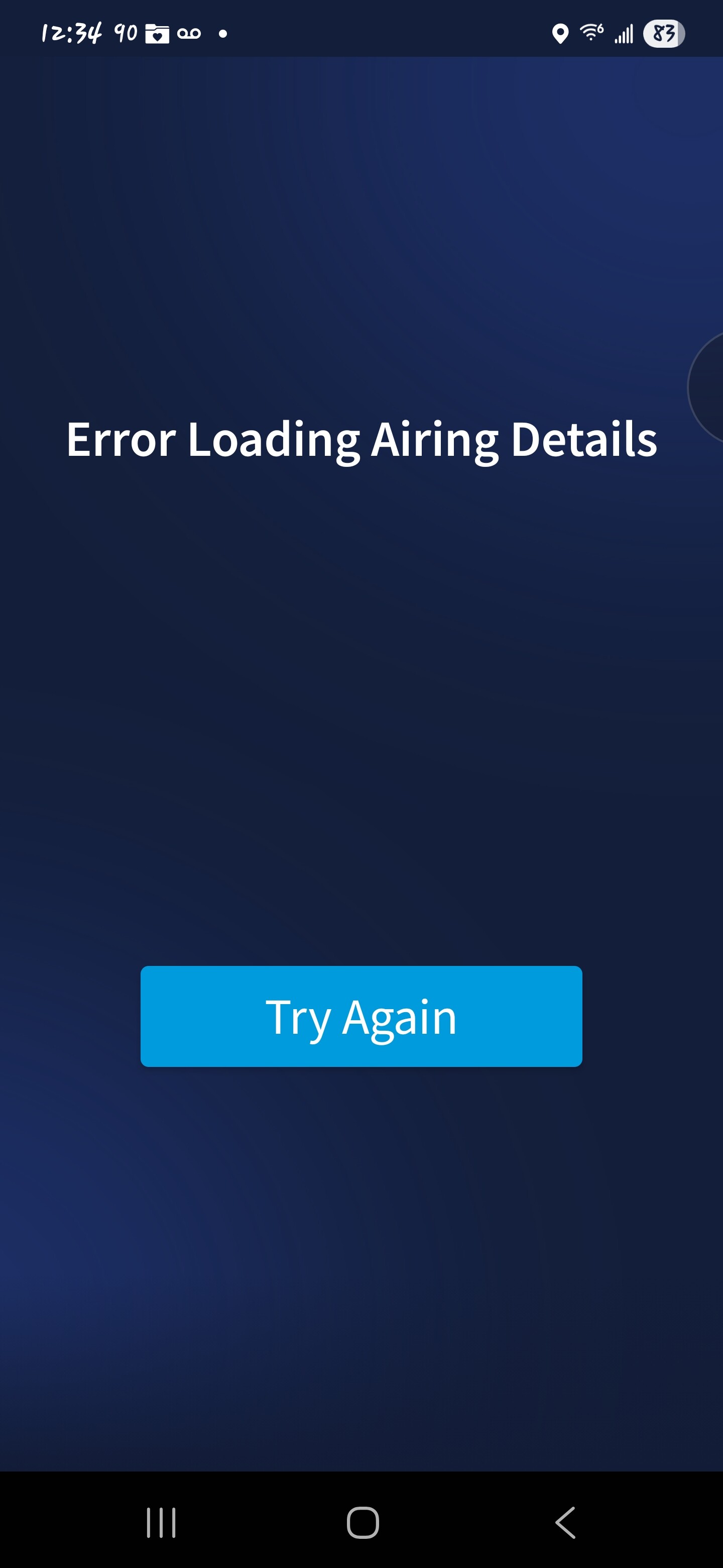Iāve been updating my Guide every 6-8 hours during daytime hours for the past several days and havenāt seen any movement until just now, when I cleared cache and data on my Android phone - most if not all programming is visible in the Guide, but clicking on a major network (ABC, CBS, FOX, NBC) 12:30 PM CDT time slot shows Error Loading Airing Details message. Try Again. Womp, womp!