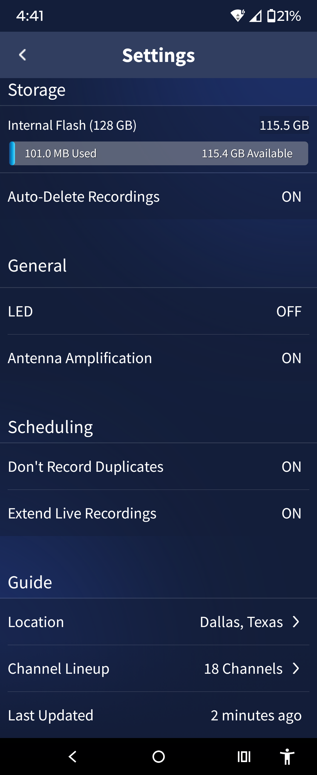 Sunday morning I power cycled (unplugged the power) to perform a “cold reboot”. Afterwards it worked “normally”. Meaning a different problem surfaced where there was a station that was in the Channel Lineup but not in the Guide. I opened another support ticket. The channel appeared later that afternoon. Still haven’t heard from support on that ticket.