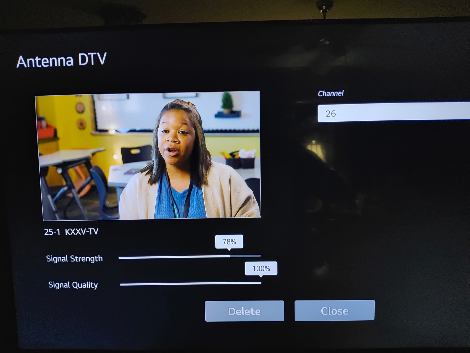 Friday the 6th I’d been watching KXXV for about an hour via antenna to LGTV. Sunday the 8th I was watching KBTX.
