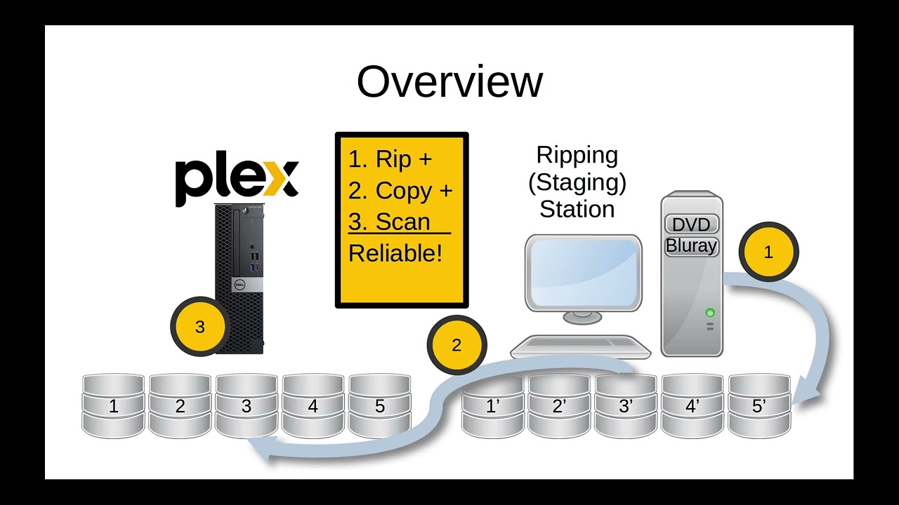 All media is stored on bus powered external USB attached drives. You can learn more about my architecture here: